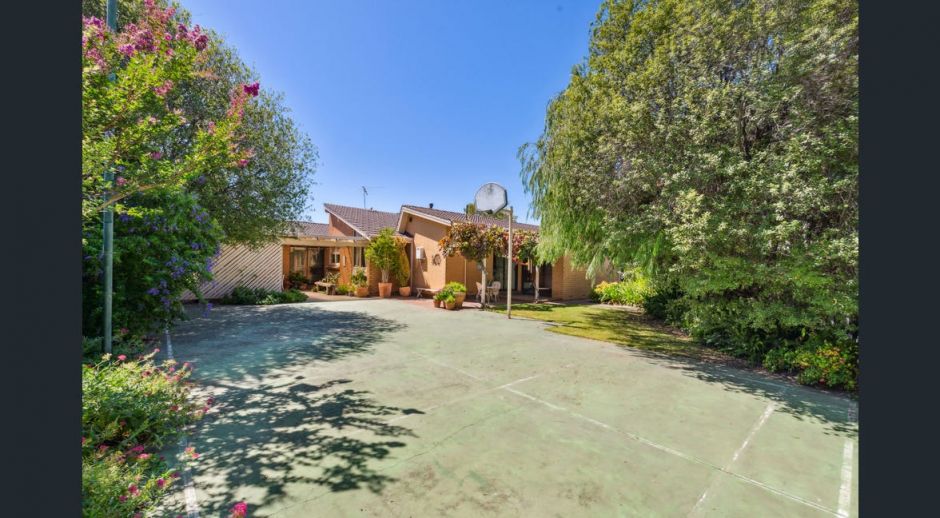 Outside, there is a spacious waterproof pergola overlooking a multi-game court, able to provide hours of entertainment for kids to play basketball, netball, tennis, or an array of other sports, as well as a large space to hold significant parties in the future. The allotment also offers side areas for two garden sheds, grassed areas for pets and vegetable gardens.